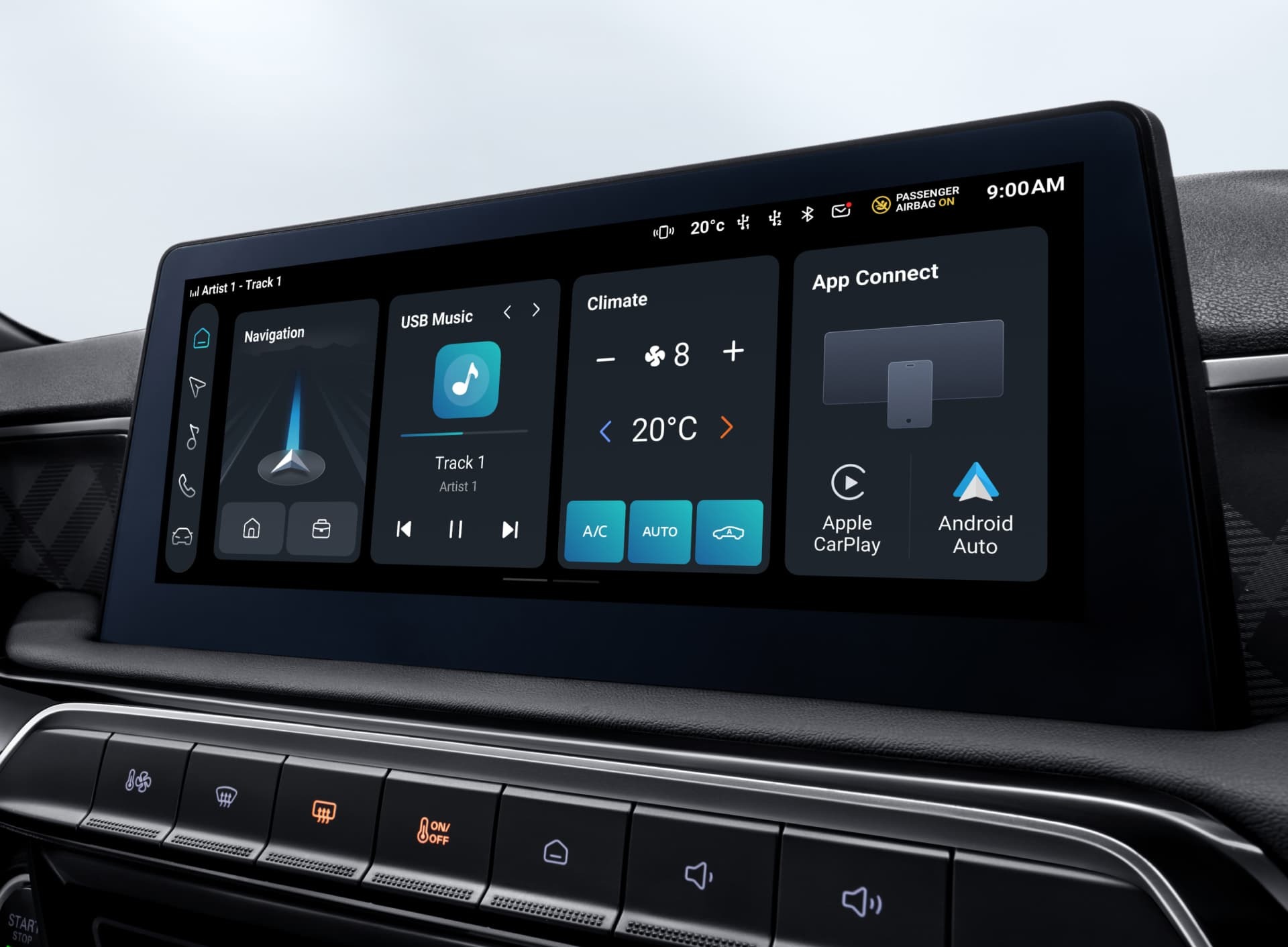 Οθόνη infotainment 10.25″, όπου μπορείτε να ρυθμίσετε το σύστημα πλοήγησης ή να επιλέξετε το αγαπημένο σας τραγούδι. Χάρη στην οθόνη HD και τον έξυπνο σχεδιασμό της, μπορείτε να επιλέξετε ό,τι χρειάζεστε ενώ οδηγείτε με ασφάλεια. Είναι συμβατή με τη συσκευή σας iOS ή Android.