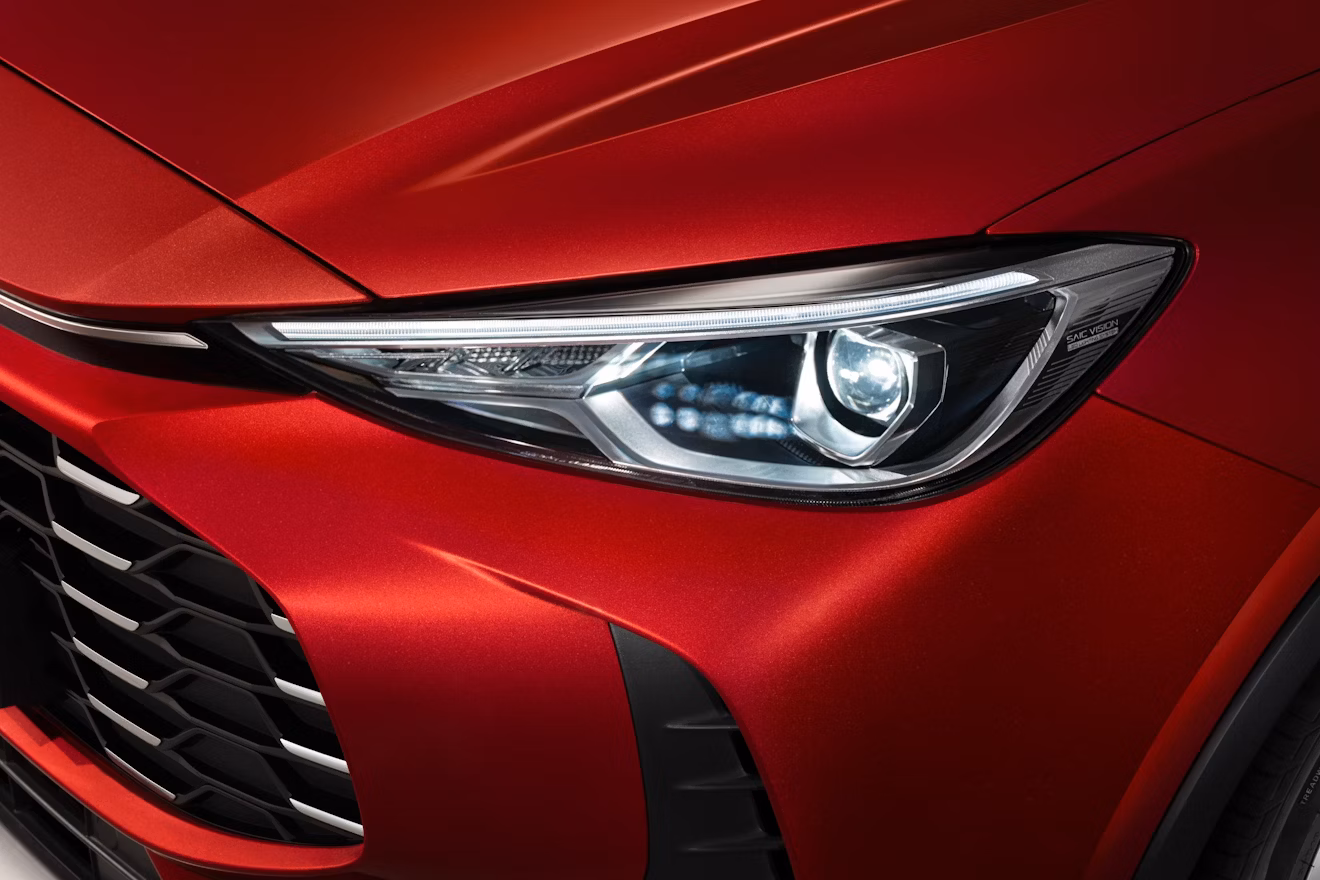 Μια πλήρους πλάτους διακοσμητική λωρίδα διατρέχει την πρόσοψη και συνδέει και τους δύο προβολείς, σχηματίζοντας μια προηγμένη και πλούσια εμφάνιση. Μέσα σε κάθε φωτιστικό υπάρχει μια μονάδα LED που ενσωματώνει χαμηλή και υψηλή δέσμη.